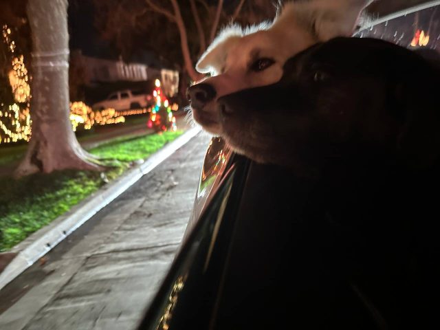 On Christmas Eve, we decided to take Coda out to see the decorations on Christmas Tree Lane, which is on Fulton here in Palo Alto. We knew it would be her last Christmas, so we wanted her to see the spectacle just one last time.