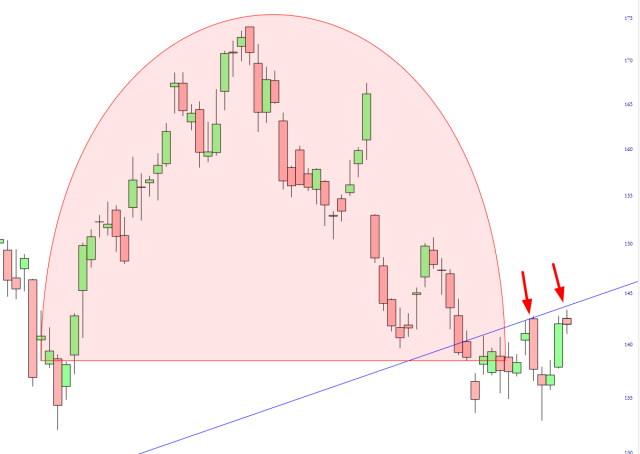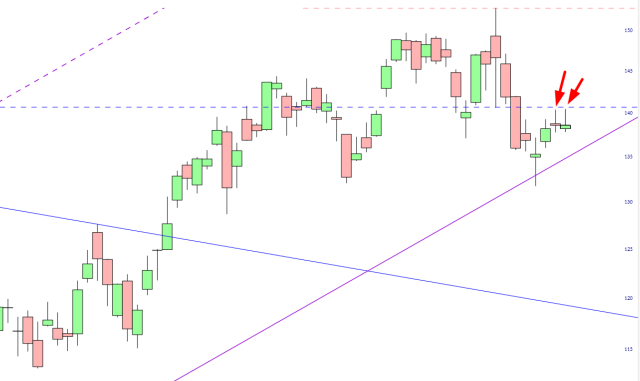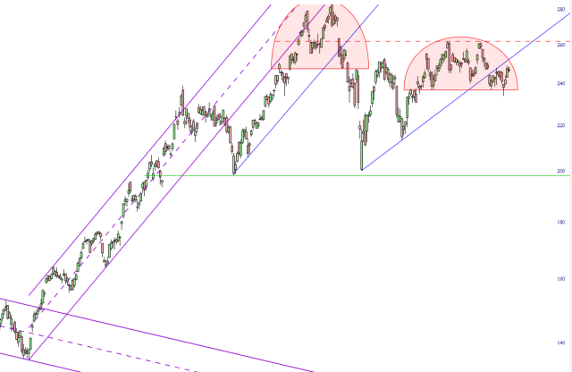 The semiconductor sector has enjoyed a counter-trend rally for a few days, but my conclusion is that the broken trendline, as before, represents an important reversal point for this sector.