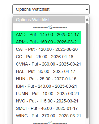 For my own positions, represented here in Options Charts, I’m maintaining these puts.