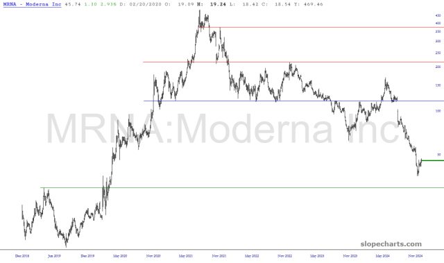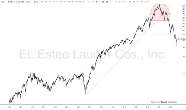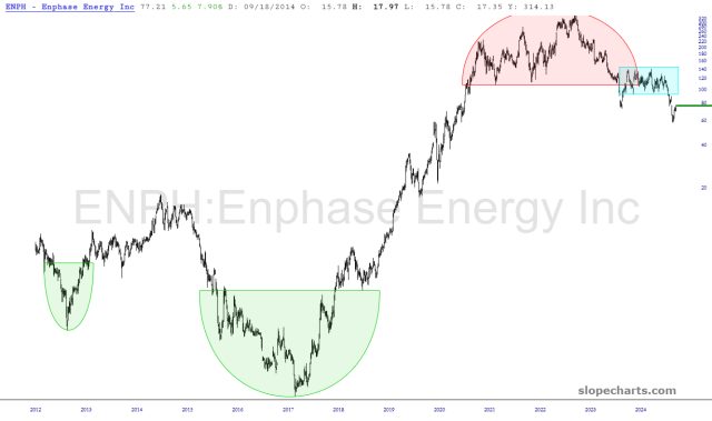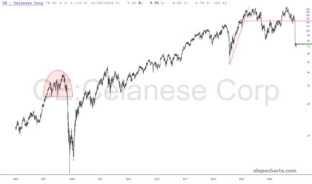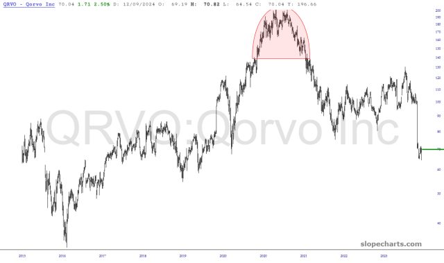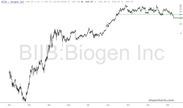 Even in this totally unhinged, make-everything-go-up year, it’s not all peaches and sunshine. Here are some stocks that got slammed, the bottom ten of the S&P 500, with their long-term charts shown beneath.