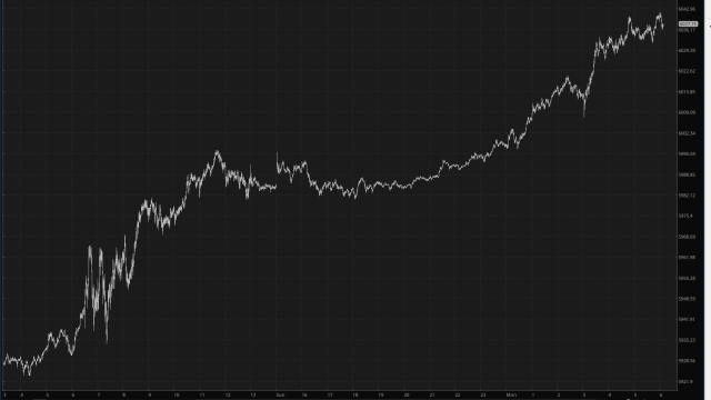 Anyway, it’s the same old, same old for the market. The bulls are getting handed profits on a silver platter. Here’s the /ES, drifting effortlessly higher.