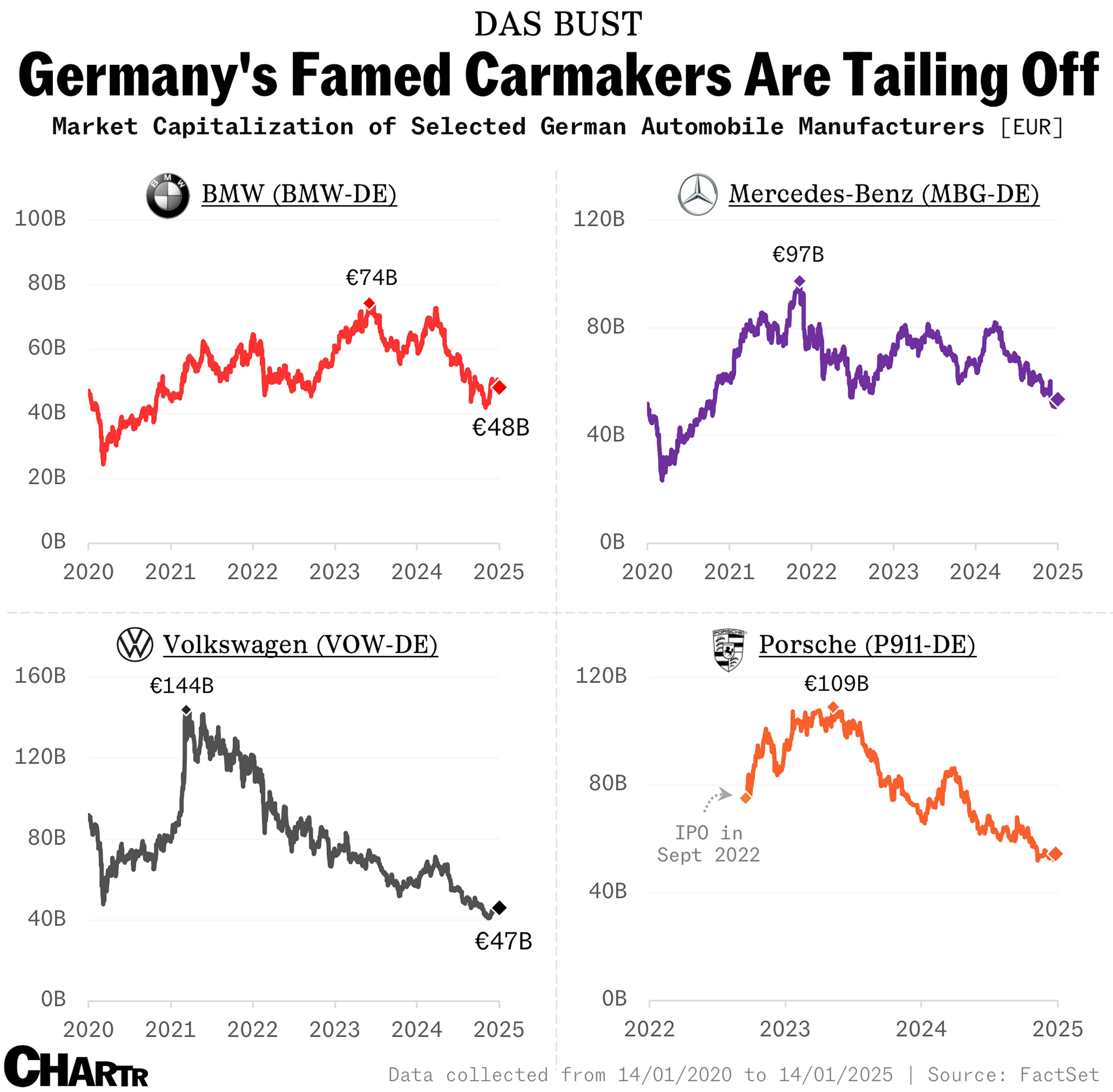 It seems the great names of German’s auto manufacturing are on the wane. Having driven an electric Mercedes Benz recently, I’m not at all surprised.