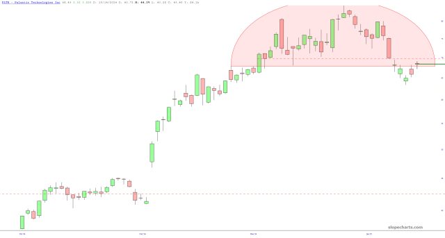 Here’s a rare success story in which I’m not furious with myself for selling too soon. The stock was Novo Nordisk (NVO), and I bought puts and made a triple-digit profit on the puts. The reason I’m bringing this up is because the hard fall of NVO almost perfect sealed its price gap (dashed green line) which is providing support.