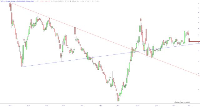 A real-time example of my Securitization of Feelings concept can be seen this morning in the plunge in price of the equity DJT. Simply stated, the Trump coin has sucked all the oxygen out of the room. Trump fans have a better, more volatile instrument with which to express themselves. DJT is boring.