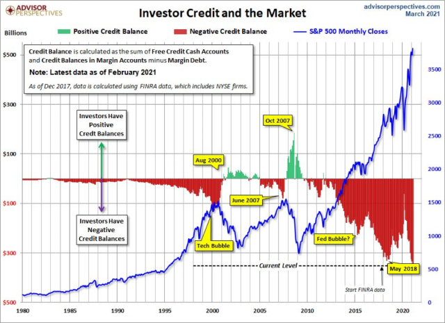 A tip o’ the law to our mutual friend The Director who sent me this interesting chart this morning illustrating just how deeply dependent “investors” are that stocks move higher from here in order to make all their margin debt worthwhile.
