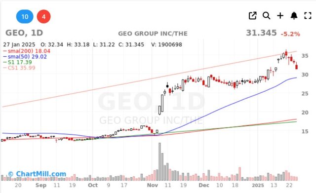 The market anticipated this to some extent, driving up shares of private prison company The Geo Group (GEO -3.46%↓) after the election, assuming they’d be hired to detain illegals prior to deportation.