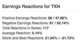 TXN has opened post-earnings typically within +/- 5%. We need to keep that in mind when we look to see what the expected move is for the expiration cycle we use for our trade.
