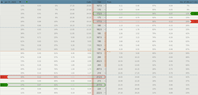 - Bull Put Spread (Downside): Sell the $177.5 put and buy the $172.5 put.