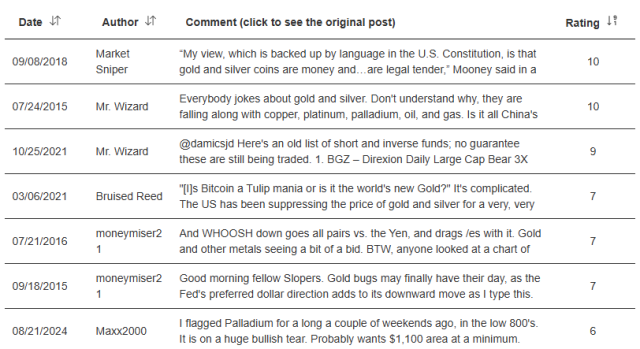 I could sort by author as well and observe that Maxx has been preaching the palladium pathway (and quite correctly dissing silver, which it took me a while to figure out).