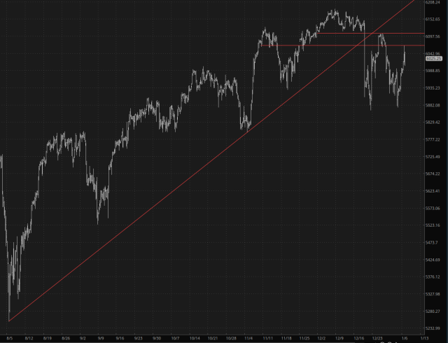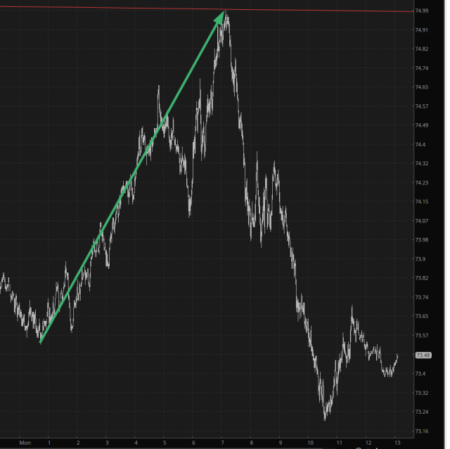 Thus, although the /ES and /NQ did indeed climb during the day, their closing figures were a fraction of where they were at early in the morning………….
