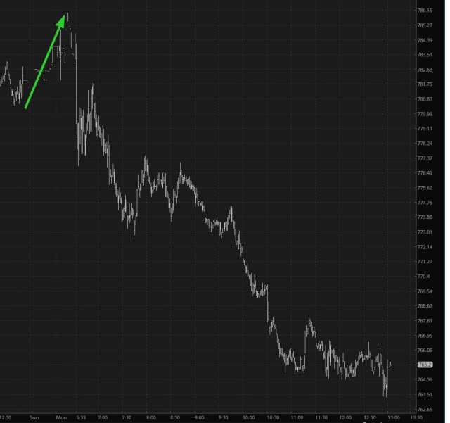 I woke up at about 4 a.m., and the last I had seen of the markets, the /ES, /NQ, and /CL were all red. I didn’t look at my iPad, but I figured that, on the heels of the big rally on Friday, maybe we’d get a day when the good guys would win.