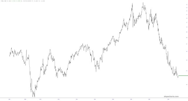 A ratio chart of these two is illuminating as well. Palladium peaked around May 2021 versus gold. Since then, this ratio has fallen by about 75%!