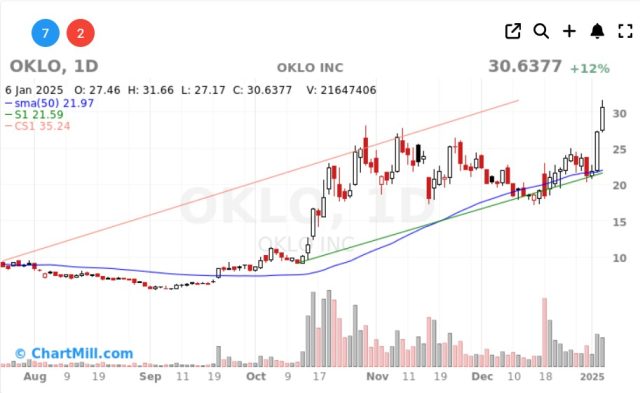 Like RKLB and LUNR on Friday, OKLO has spiked double digits today (Monday).