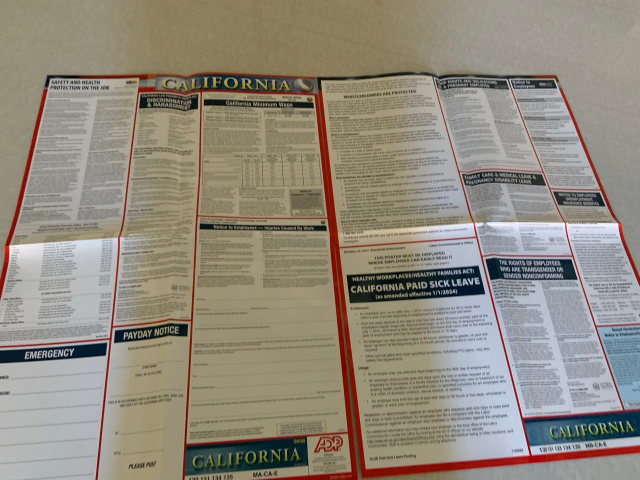 The Slope of Hope website is owned by a one-person company, and I own and work for that company. It’s just little old me. In spite of that, my payroll provider (which, I want to stress again, remits payroll to ONE person) is required to send me these two gargantuan laminated posters spelling out all of my rights.