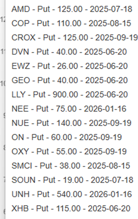 Courtesy of Slope’s own Options Charts page, here are my fifteen bearish positions: