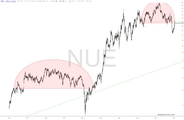 Much was made on Monday about the protective tariffs for the aluminum and steel industries in ‘mericuh. My one relevant position, NUE, I didn’t touch, and I daresay the three steel outfits shown below will cut below recent lows soon enough.