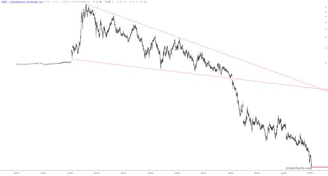 Perhaps some of the most pathetic wipeouts from the New Green Deal are the electric charging companies. They’re basically all down about 99% and teetering at the edge of bankrtupcy.