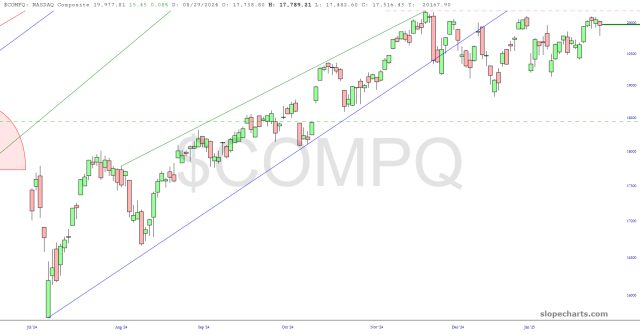 I will be spending the first portion of the morning yet again heading to the airport, so I’m going to leave you a few charts to chew on. The theme here is that the market has stalled out underneath important resistance. Hopefully by the time you read this, a surging market won’t render my charts moot. In any case, I’ll be settled in at the airport a few hours into the trading day and can pick up my regimen then.