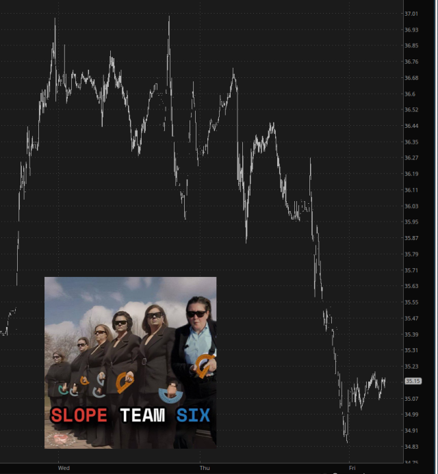 Good morning, everyone, and Happy Friday. I survived night number two with little Duke, and he’s doing great. He has intuitively grasped that when I stand and work, he can just curl up right next to my feet and relax. Clearly this pup understands the nature of Slope. By the way, if anyone recommends to you the value of setting an alarm clock to go off once every hour all night, tell him no thank you.