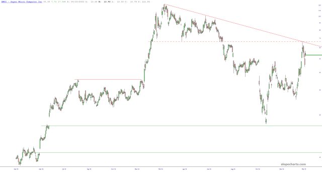 Yesterday, one of my bearish positions, SMCI, blasted higher pre-market (red circle). I couldn’t do anything about my options until the open, and mercifully, the stock immediately resumed its fall. I closed PART of my position at a good price (green circle). This morning, since SMCI was the #1 gainer with an enormous lift thanks for them filling out some paperwork on time, I RE-LOADED the full position (purple circle).