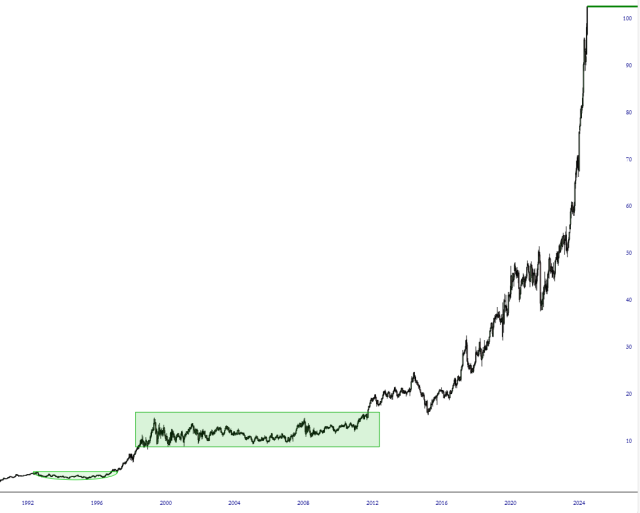I’m pretty much just speechless. WMT has gone up almost every single day for over a year, doubling in just twelve months, and this seller of crackers, toilet paper, and laundry bleach is sporting a P/E ratio of 42.