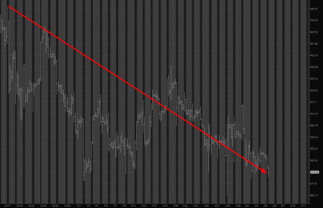 Indeed, since mid-December, it’s been a fairly brutal hammering lower.