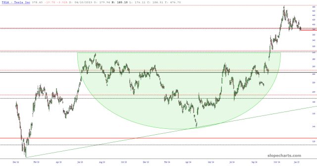 From late April until mid-December, Tesla (TSLA) was an incredible stock. It went from being the 500th performer in the S&P 500 to one of the hottest of the year, gaining hundreds of percent. Over the past seven weeks, or so, it’s lost about 25% of its value (!!!!!!!!) with this week contributing a good chunk of those losses, even while the rest of the market rallies.