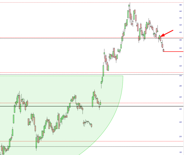 It all agrees with precisely with my warnings about the Fibonacci failure. Next meaningful support level: $306.