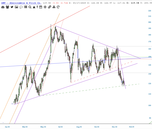 Here are charted technicals for CLX, ANF, NVDA and SOUN.