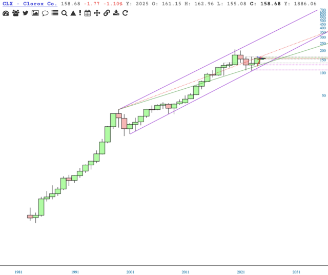 The yearly chart is good to start with because it shows the four and a half years since the CLX highs.