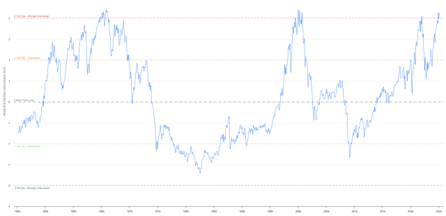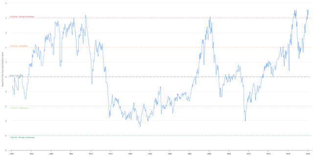 The Reversion to the Mean for the S&P 500 is also above the 2-standard-deviatations mark, which has in all prior instances preceded a total wipeout.