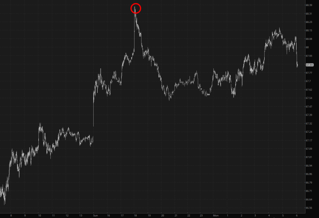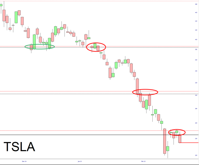 The Tesla Fibonacci sequence, anchored to June 3, 2019, continues to rule the roost. As TSLA has ground its way down to about half its December value, it has shown special respect for Fib levels. Most recently, when it bounced last week, my view was that the Fib pair would serve their job of resistance. Indeed they did, with the price peaking a mere 0.6% above the Fib last week. Today, it’s in down-mode again, as the World’s Worst CEO Decision continues to express its effects.