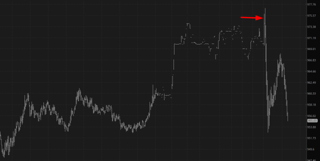 This hasn’t been a great morning, but it isn’t quite the catastrophe I feared either. I will say that the most annoying moment of the day was getting stopped out of NFLX instantly at $974. Surprise, surprise, the price ripped above that level for a few moments before plunging (even on a day like this). There’s always been paranoia about “gunning for stops“, which I’m starting to think is more real than I imagined. This was worse than watching a Netflix drama about all the black, differently abled monarchs of medieval Europe.