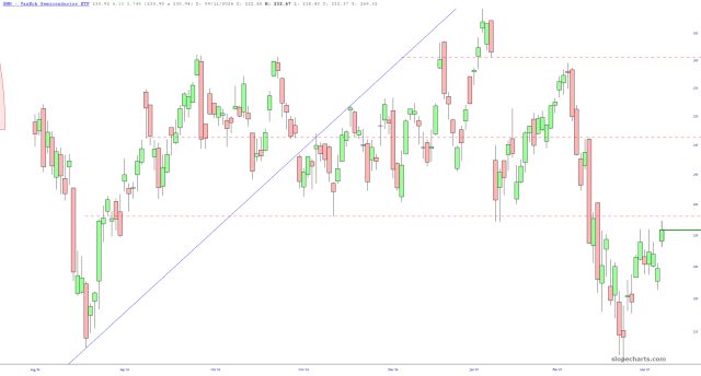 Let’s consider the semiconductor ETF for a moment, symbol SMH. I dumped my August puts at a loss and bought into deeper-in-the-money and shorter-timeframe June $250 puts instead. Resistance, in my opinion, is 233.14: