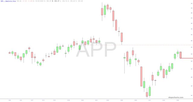Not a bad day so far! After some initial wiggling and waggling, we’ve got a bit of selling going on, with the /NQ down over 1% (which these days is considered a crash). Here are five charts that are doing particularly nice about-faces, which I appreciate.