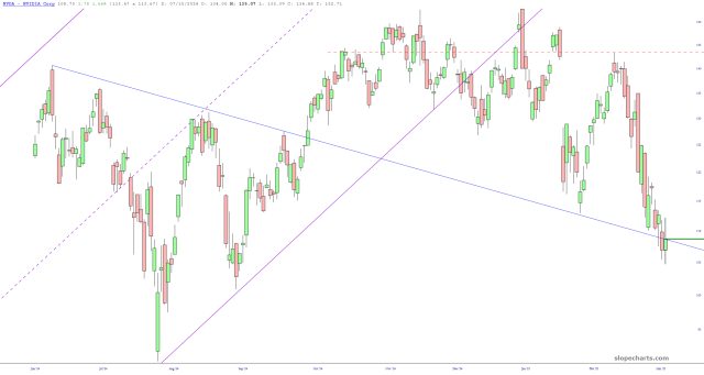 The /RTY is up a similar amount, although the amount of the pop that already faded is quite pronounced. It looks like a lot of folks got stopped out at wretched prices.