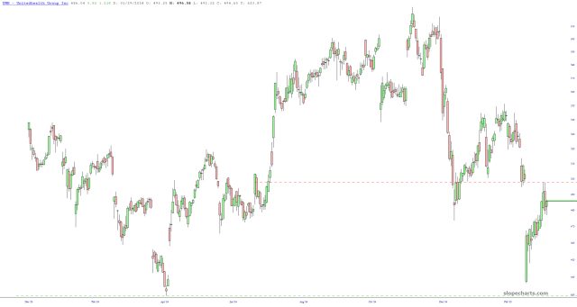 …….versus a setup like UNH which seems absolutely prone to a tumble.