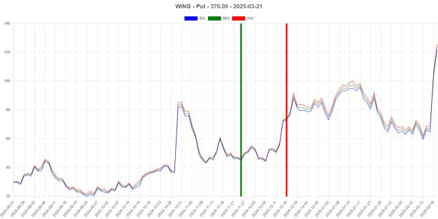 I’ve got to say, I am just head over heels about our Options Charts. I haven’t seen anything like these ANYWHERE on the web, and they’re fantastic. Here are some favorite trades from the past in which the market kept pushing higher (AKA I sold too soon). The red horizontal marks the sell point (to be clear, I often got back into the same trade later, so it’s not all about self-flagellation).