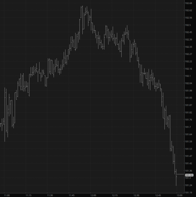 I expect bright green when I woke up this morning, and my hope was that the announcement below would be a fitting denouement to the asset zaniness since, let’s face it, every single one of these announcements has been a huge Nothing Burger to the crypto freaks (I’ll set aside the fact that the financial genius who posted this breathless tweet couldn’t manage to spelling the word “breaking” properly, although it is, in a Freudian sense, quite fitting):
