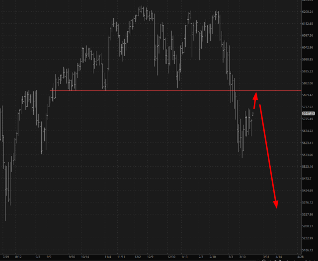 Well, gang, Sunday futures are open, and equities are generally up about six-tenths of a percent as of this writing. We’ve got a gap up, and I’ve gone ahead and dispensed with the horizontal “jump rope” since I’m quite weary of writing about the sinewave that’s been going on for the past two weeks. The real question now is simple: this time, will the bulls finally get their act together enough to launch up to meaningful resistance, instead of dicking around in the 5725 zone and going nowhere.