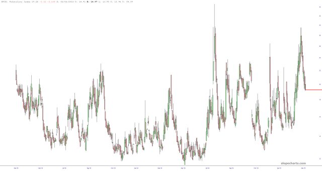 We have, after all, burned off some of the VIX, but above 19, we’re still not there yet. Getting the VIX beaten down to 15 or so would make shorts vastly more tempting.