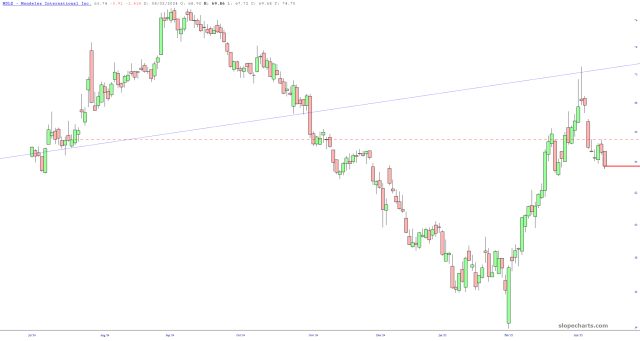 The bigger picture of MDLZ shows the reason I’m happy to hold on to these puts.