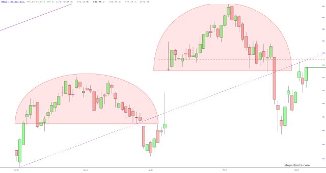 The shame of the whole “drop and then bounce yet again” between yesterday and today is a lot of juicy positions got decidedly un-juicy. Mercifully, I sold 50% of my NFLX puts yesterday at a great profit, because Netflix is bouncing back to resistance, but jeez, guys, can we get that plunge resuming again? I’d prefer it!