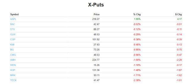 As much as I’m bellyaching about the market, I will at least say that Friday, a day on which the /ES and /NQ both ended in the green, my bearish positions were (with one exception) all red, which isn’t terrible.