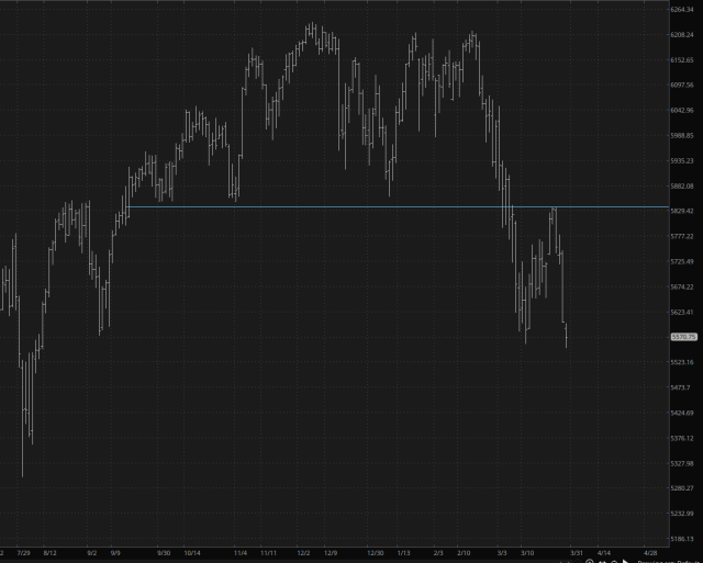I had called for 5800 on the S&P 500 as a peak (cash market), which was almost perfect. It tagged the neckline, and then barf-o-rama.
