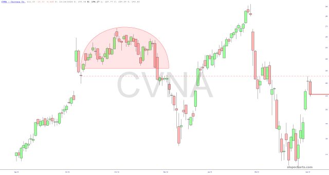 Not a bad day so far! After some initial wiggling and waggling, we’ve got a bit of selling going on, with the /NQ down over 1% (which these days is considered a crash). Here are five charts that are doing particularly nice about-faces, which I appreciate.