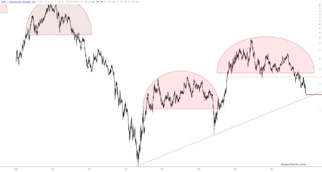 Another long-term short that got away from me was Cleveland Cliffs (CLF). I featured its chart many times, and the prophecy certainly came true.