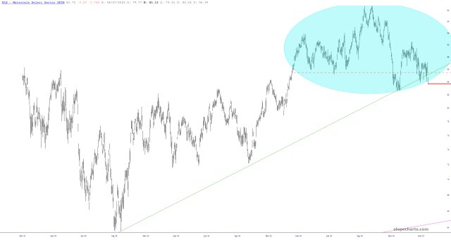 As mad as I am at myself for not sticking with XOP, I did in fact short (in size) an ETF yesterday which has pretty much sorta-kind made up for it, and that is Materials, symbol XLB: