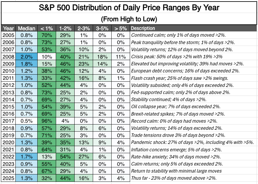 An interesting graphic illustrating how years different with respect to volatility. 2008 sure was fun!