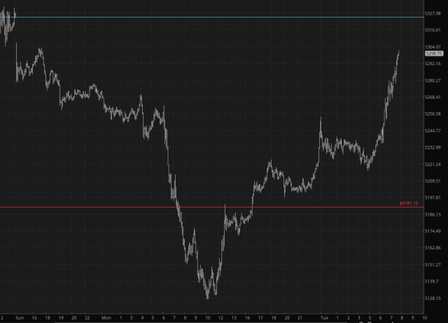 All the excitement and fun of Sunday/Monday plunge has been eradicated. It looks like /ES and /NQ, respectively shown below, are on a mission to seal their Sunday gaps, marked with the blue horizontals.